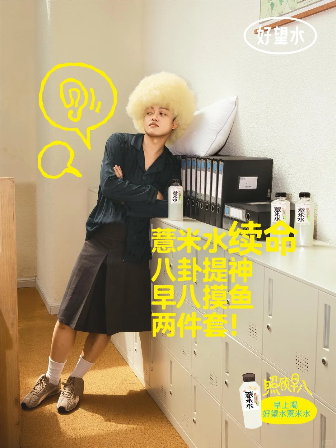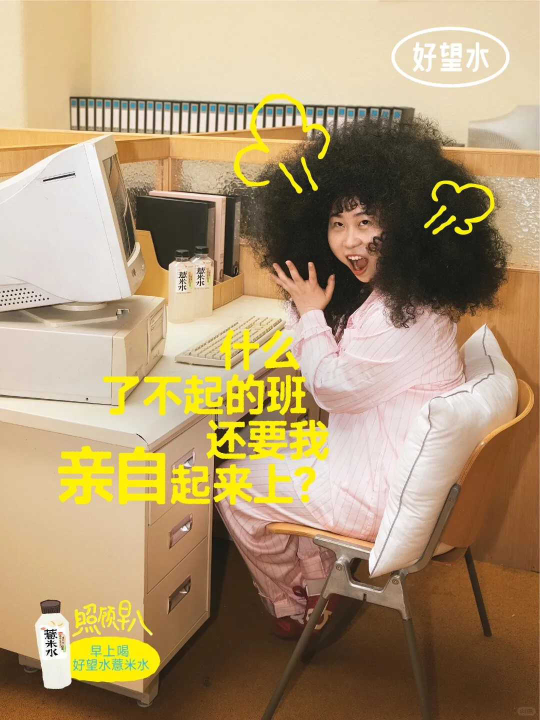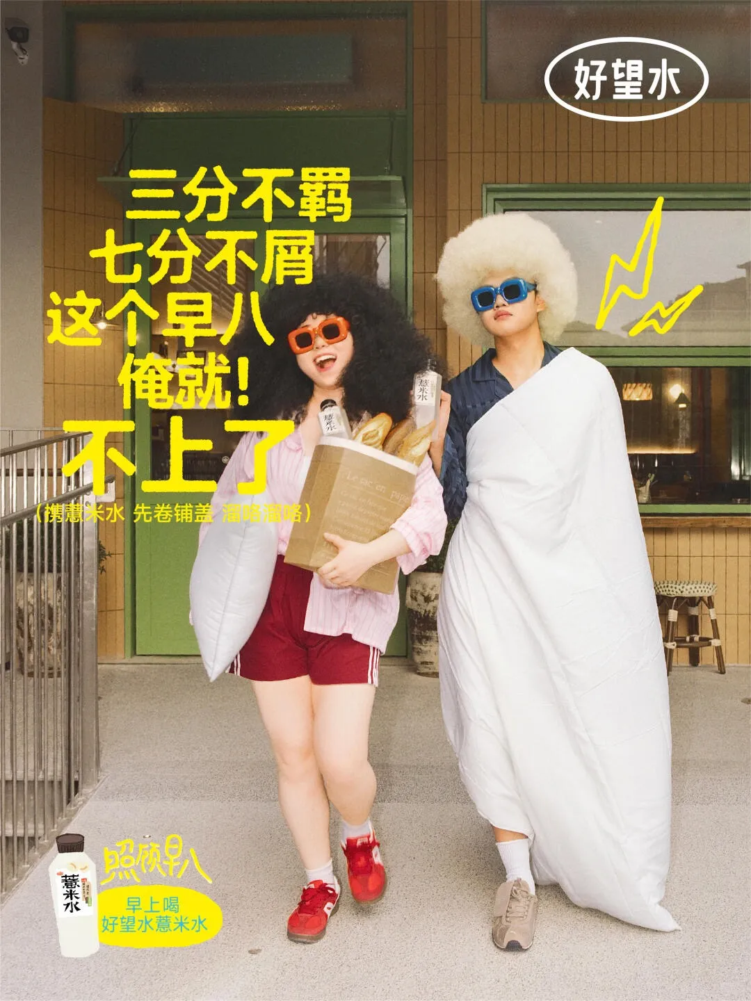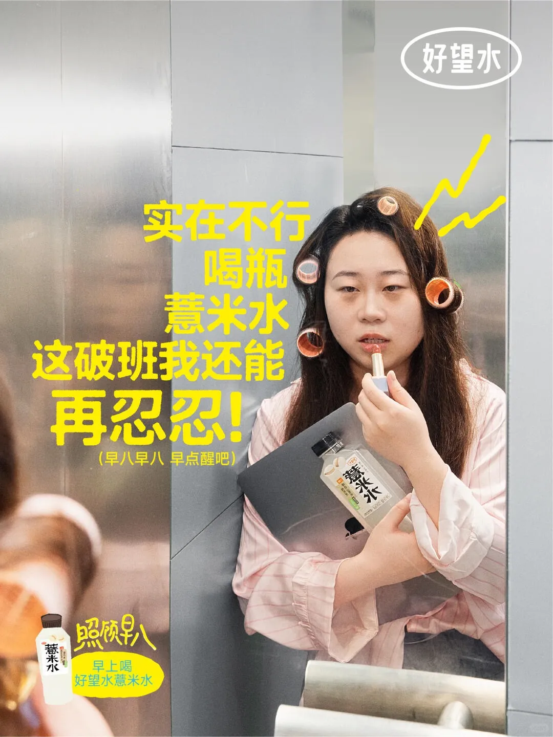 近日,好望水发布了「照顾早八」系列海报,用疯癫的精神状态吐槽每天都要早八的破碎心情。起不了床,被早八绑架,什么班要亲自上,把床背身上……一整个说出了打工人的心声。