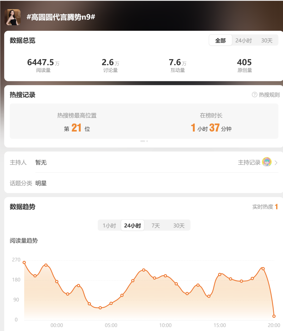 顶流明星能迅速为品牌带来巨大关注。理想官宣易烊千玺后,相关话题迅速冲上热搜,实现了破圈层传播。高圆圆代言腾势N9的话题也获得了6400万的阅读量。