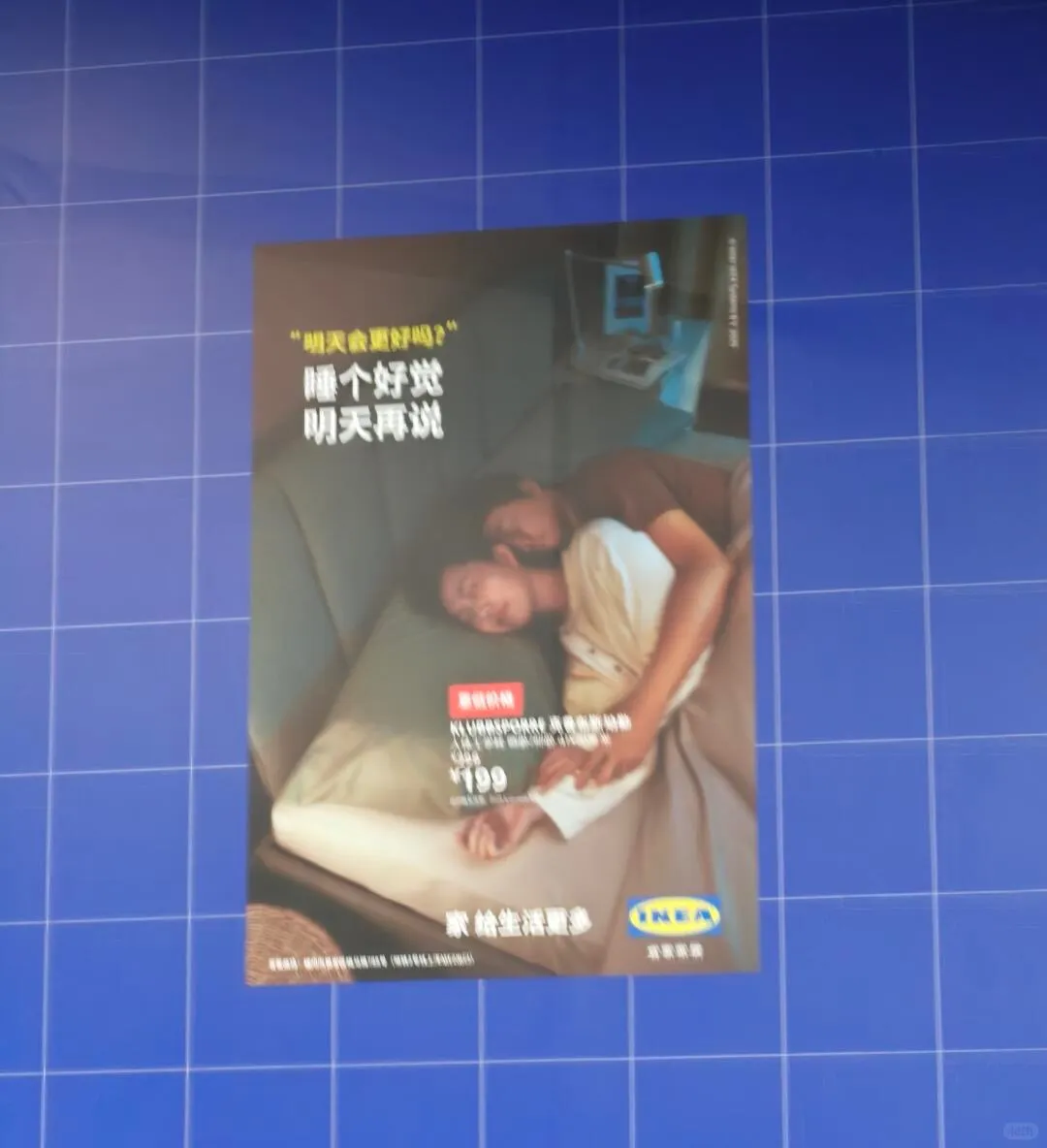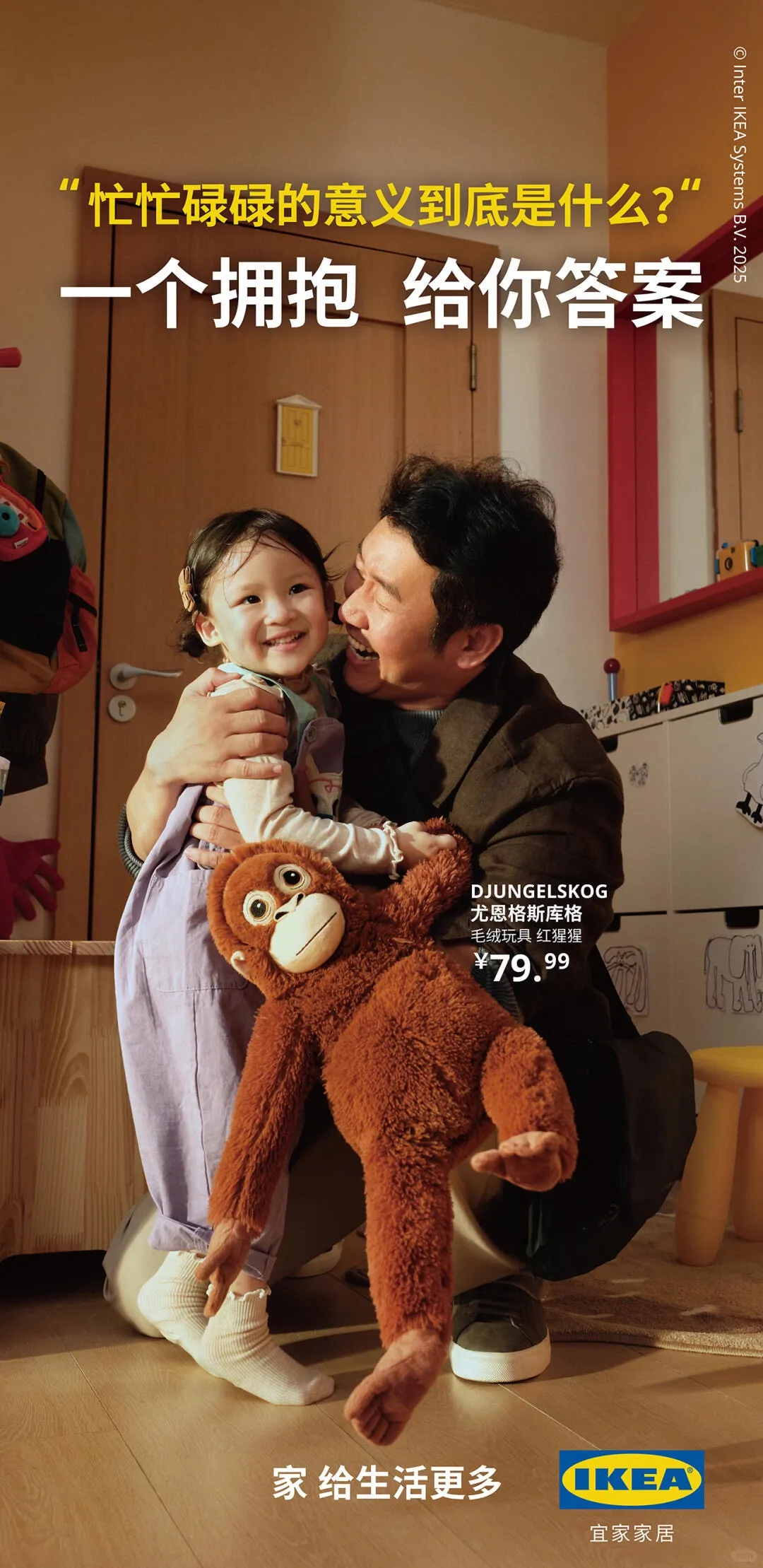 海报文案直面年轻人心底对生活和工作的焦虑、困惑。而对于这些,宜家给出的答案是“家”,海报描绘真实的亲情涌动的画面,提醒我们,正是这些“爱的哲学”给予我们面对生活压力的勇气。