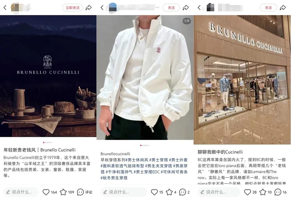 社交媒体上关于Brunello Cucinelli的讨论增加 图源:小红书