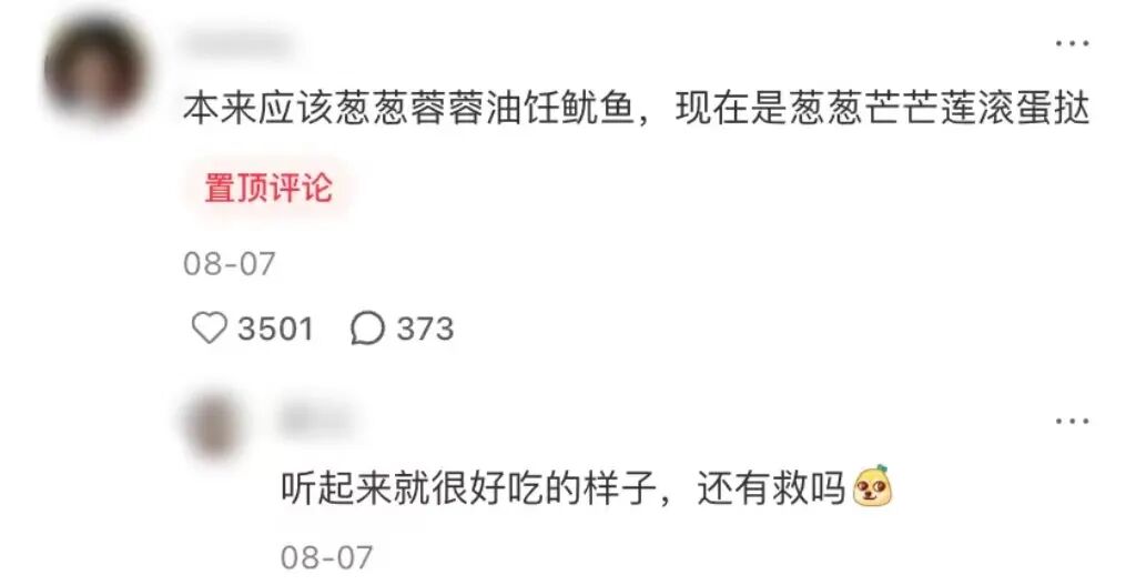 评论区的神人网友将这段发言改编成吃货版,听起来就很好吃的样子:本来应该葱葱蓉蓉油饪鱿鱼,现在是葱葱芒芒莲滚蛋挞。