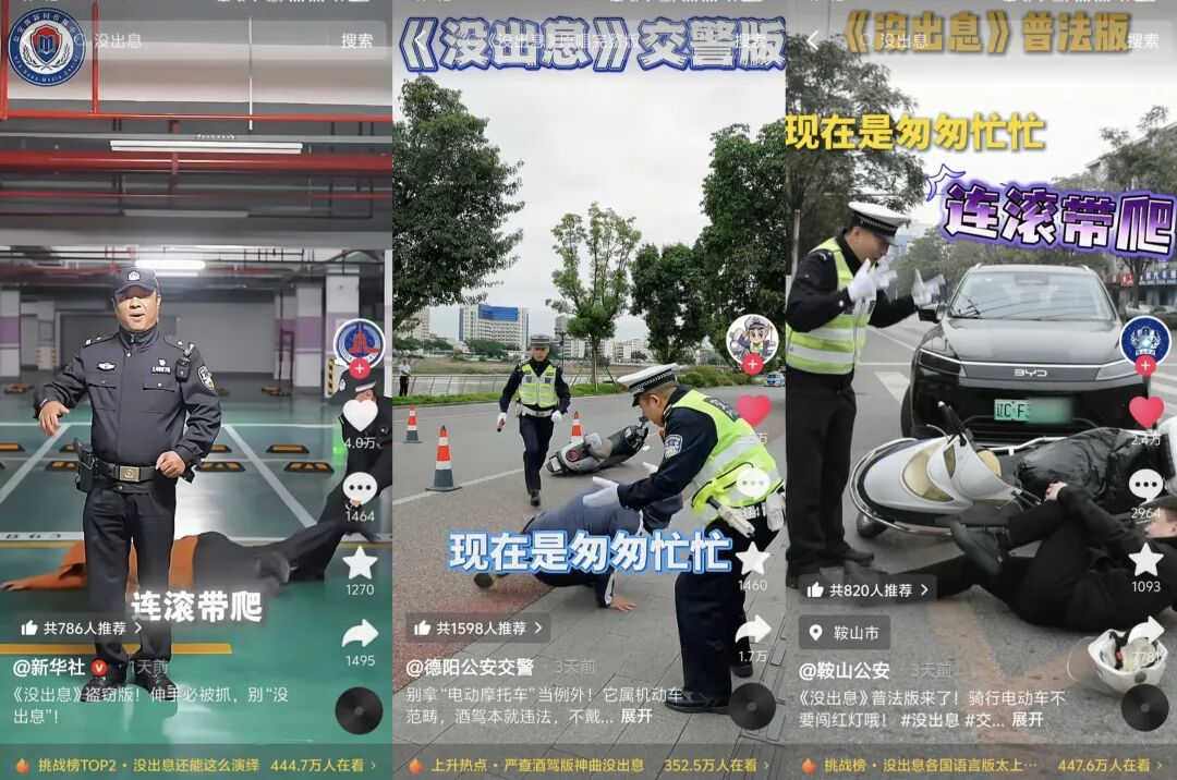 浙江交警的官方整活更是直接上强度,来了酒驾版《没出息》,画面里民警穿戴整齐、神情严肃,却跟着歌词与旋律一本正经抽象输出,把喝酒时的从容和酒驾后的狼狈做成强烈对比,教育意味拉满又魔性到不行。