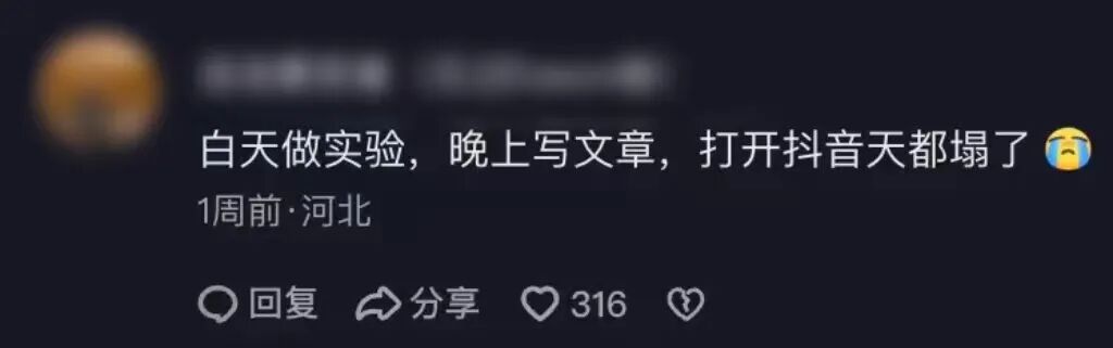 研究生白天做实验,晚上写文章,打开抖音还要被未曾谋面的网友“伤害”,天塌了。