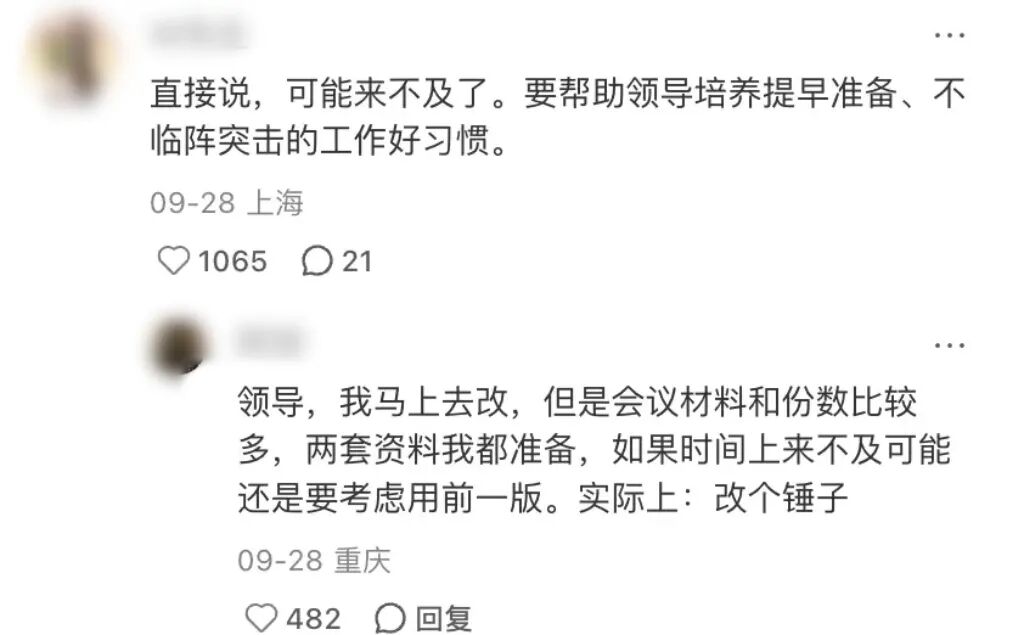领导们的灵光一闪,打工人的崩溃现场,临时修改一句话,就要重新打印几十份,跑前跑后、手忙脚乱。