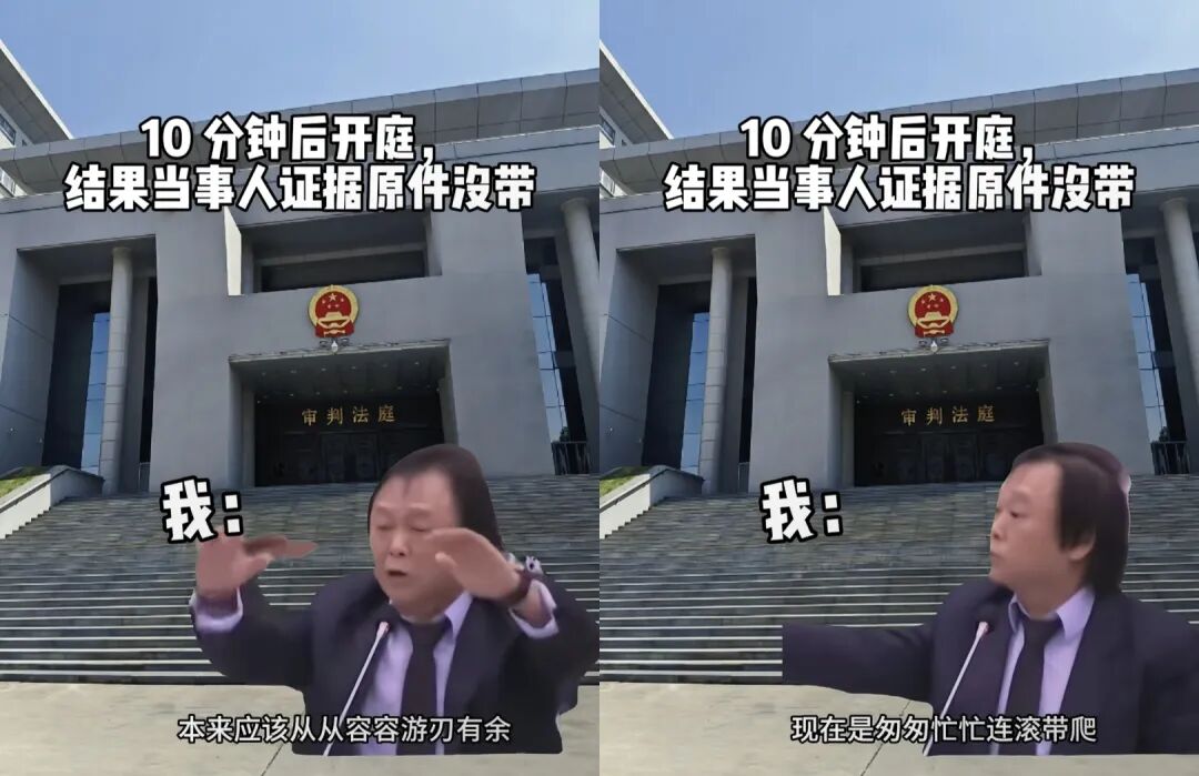 提前整理好所有证据,算好时间准备从容开庭,结果开庭前 10 分钟,当事人说证据原件没带。
