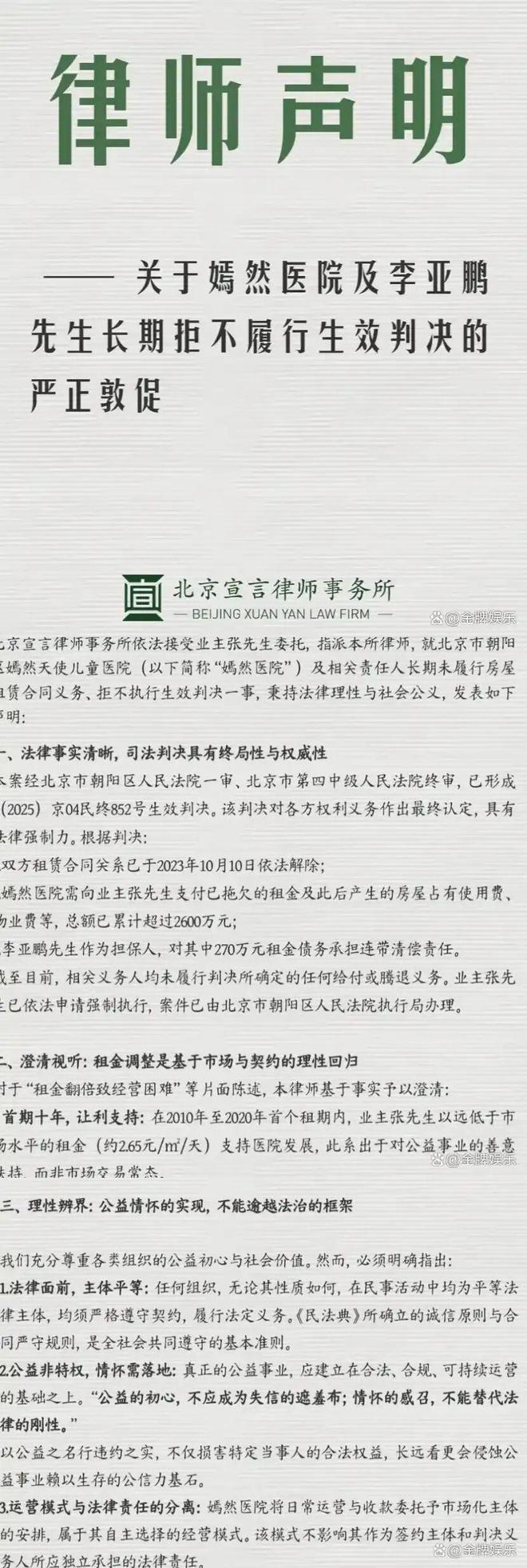 3、嫣然医院从2022年起就拖欠租金。尽管法院已下达判决书,且房东强制执行申请也已提交,但医院始终不付租金、也不退还房屋。