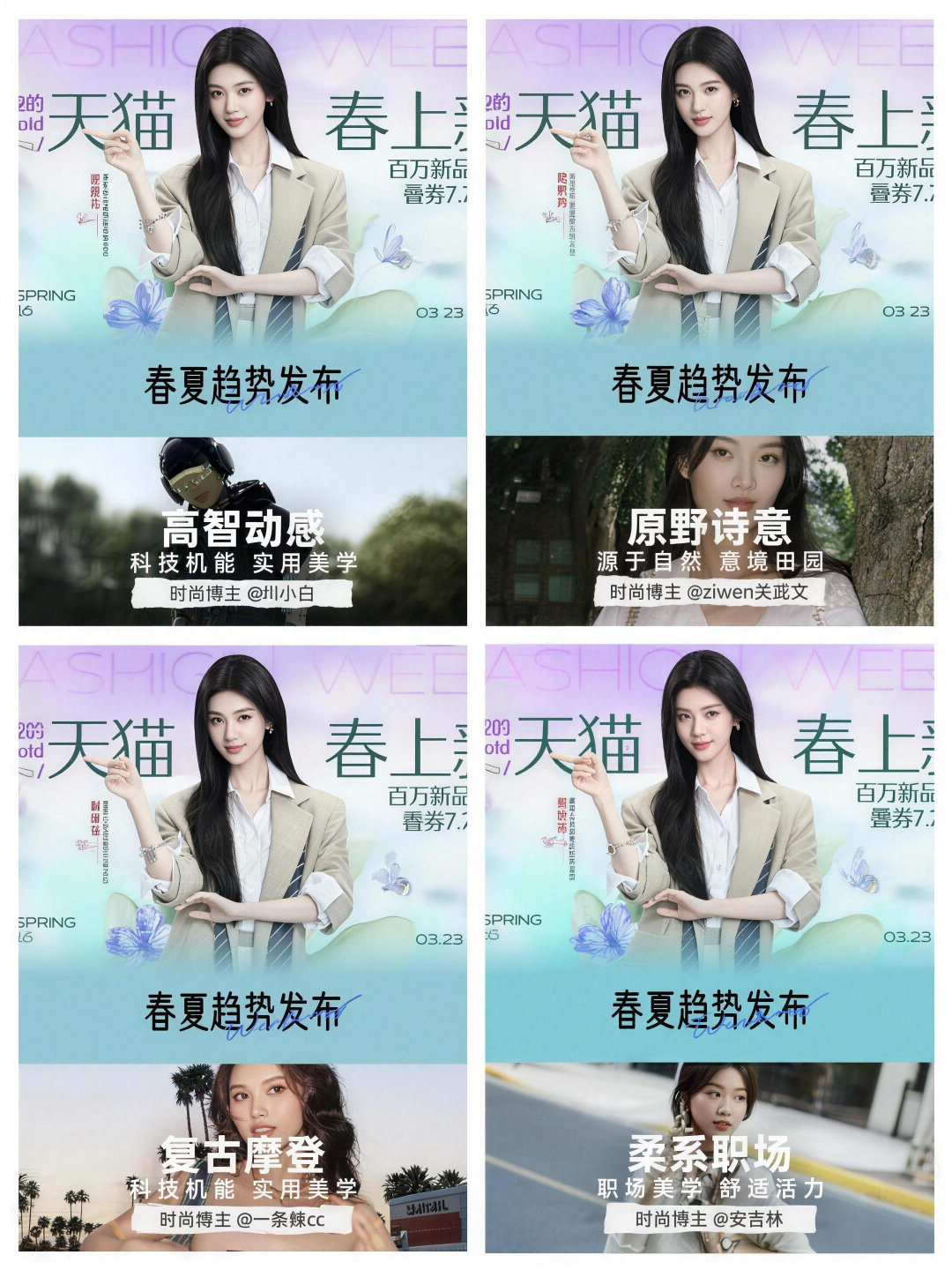 有HR发布金三银四的面试tips时提到,穿搭是面试的重要部分,天猫服饰柔系职场和高智动感的颜色风格可以给面试者一个参考,在低饱和度色系上点缀一些亮黄、紫色、绿色,得体同时还能增添印象,面试率就会大大提高。