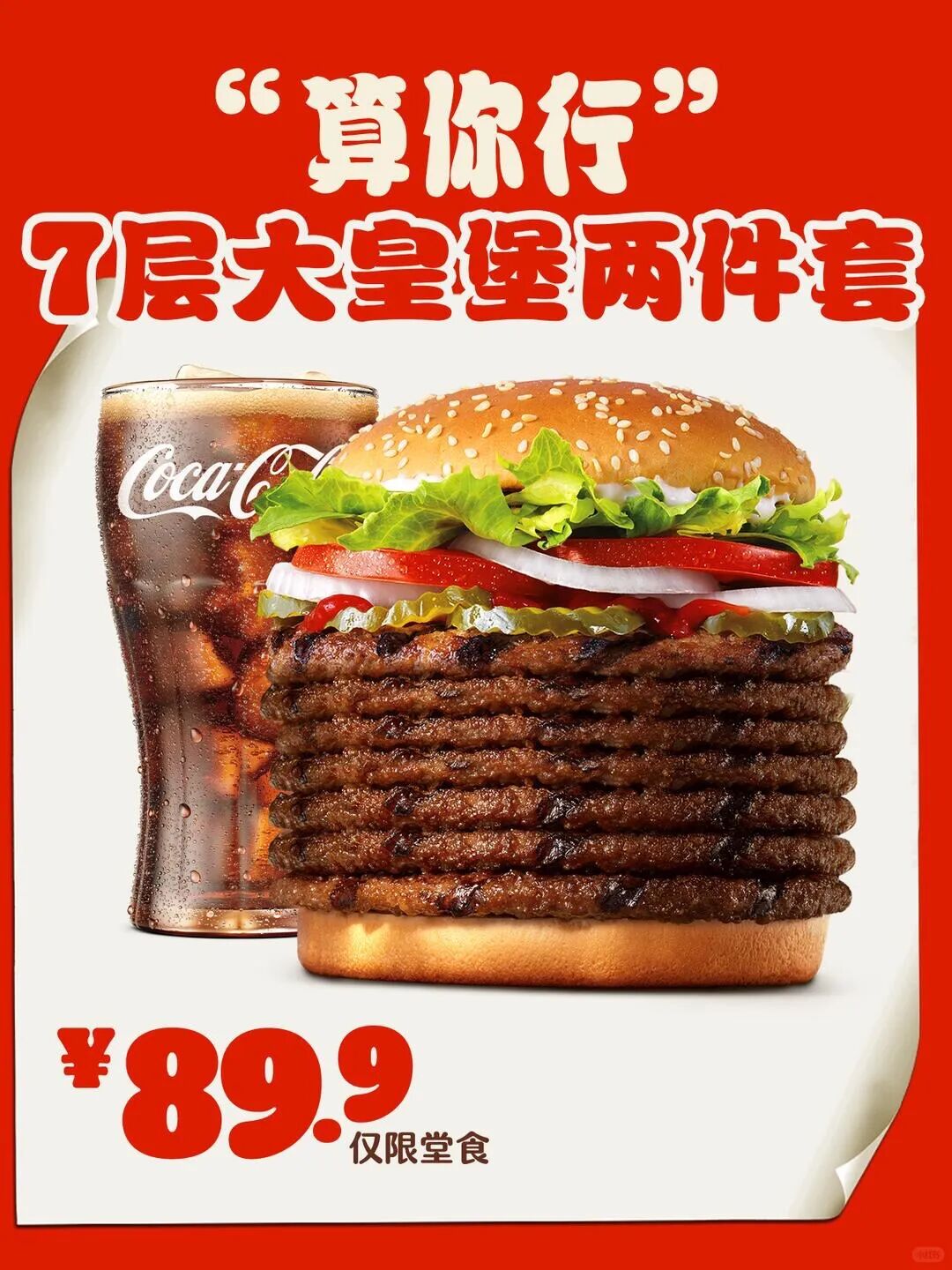 愚人节当天,汉堡王推出包含7层大皇堡的限定套餐“算你行”,产品仅限堂食。顾名思义,7层大皇堡就是夹了7层牛肉饼的汉堡。