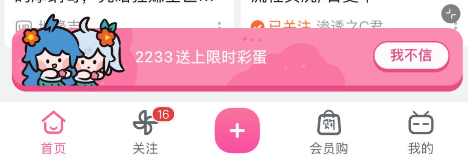 4月1日愚人节当天的彩蛋是,用户刷新B站首页多次后,底部会出现2233娘的banner。