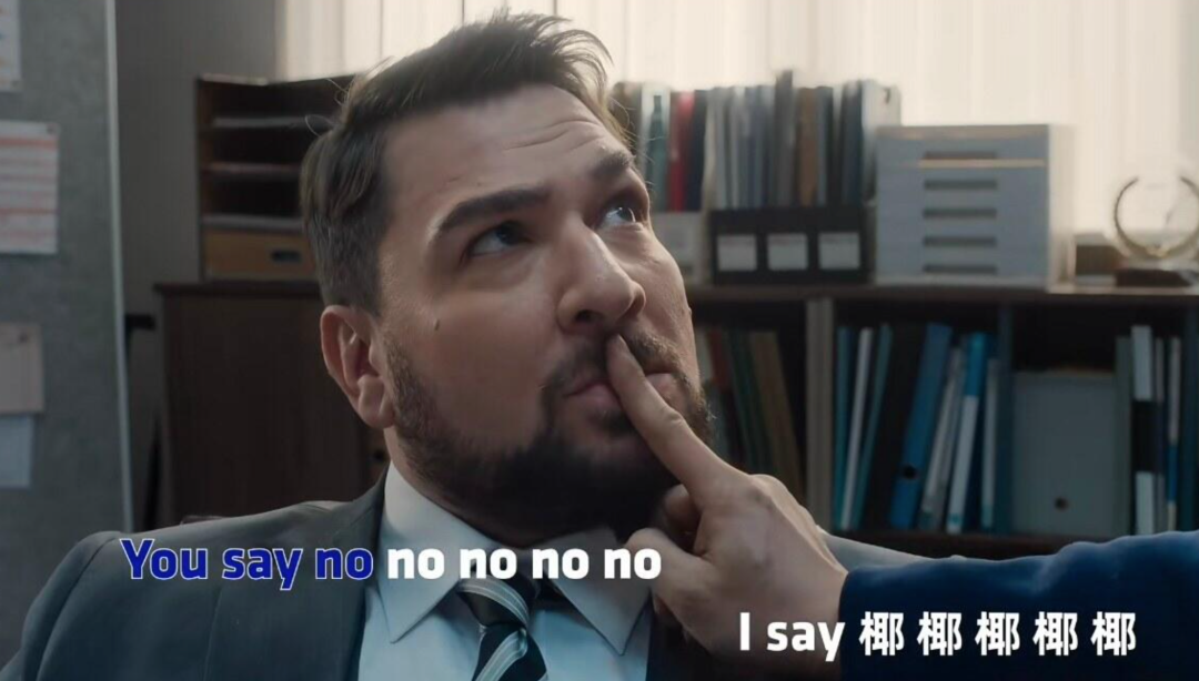 星期三,陶喆帮打工人在开会的时候哄着老板:“You say no no no no no, I say 椰 椰 椰 椰 椰, you are my baby。”陶喆用一根手指止住老板说no的嘴,画面抽象又好笑~
