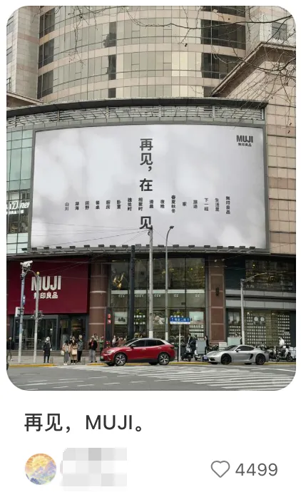 但品牌方用文案赋予“闭店”这一商业行为更多期待,并且破除了人们对品牌“开不下去”的质疑。店铺外的大屏贴出文案海报,向附近的人们说再见,相约在“其它地方”见。要挥别陪伴十年之久的朋友,但这不是终点,品牌让人们相信,他们会在生活里、旅途中与它(的产品)重逢,更会步入其它分店。有消息称,无印良品计划于今年4月底,在上海徐汇“新六百”商圈开设一家面积超过3000平方米的新城市旗舰店。