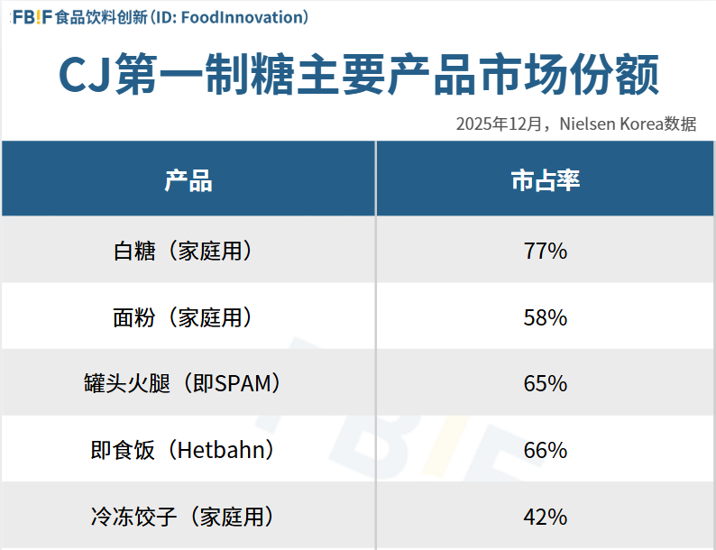 CJ第一制糖主要产品市场份额,几乎全部都有着恐怖的统治力: