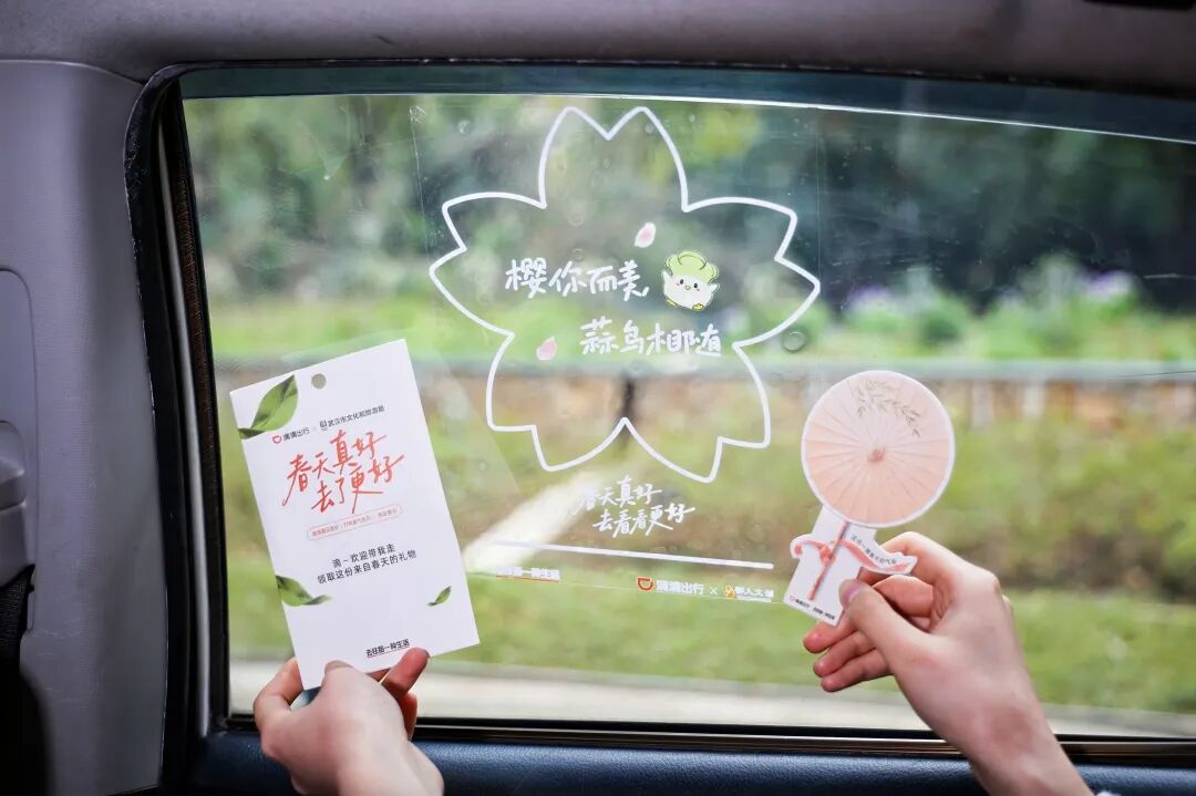 滴滴出行还联动了全国多座城市的文旅资源,在西安、武汉、常州、无锡等春季热门城市,邀请大家共同赏花踏青,把线上的情绪共鸣,真正落地到了线下体验里。不少专车内都配备了春日花卡、香香卡、挂卡等氛围装置,让游客从车上就开始感受到春花的浪漫,美哉美哉。