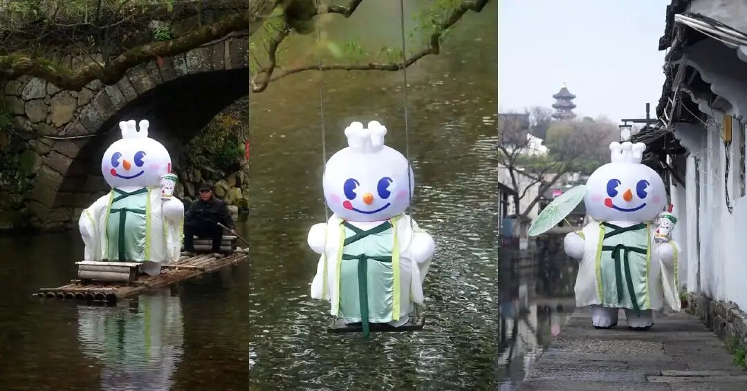 你一句春不晚,雪王就又下江南了。今年春天,雪王故地重游,再次来到了浙江绍兴的小桥流水边荡起了秋千,这次下江南是为了宣传春日爆款「龙井系列」的回归,于是雪王不同去年的经典原皮造型,今年穿了套龙井绿色系的“低定”,被网友锐评特别显肚子。