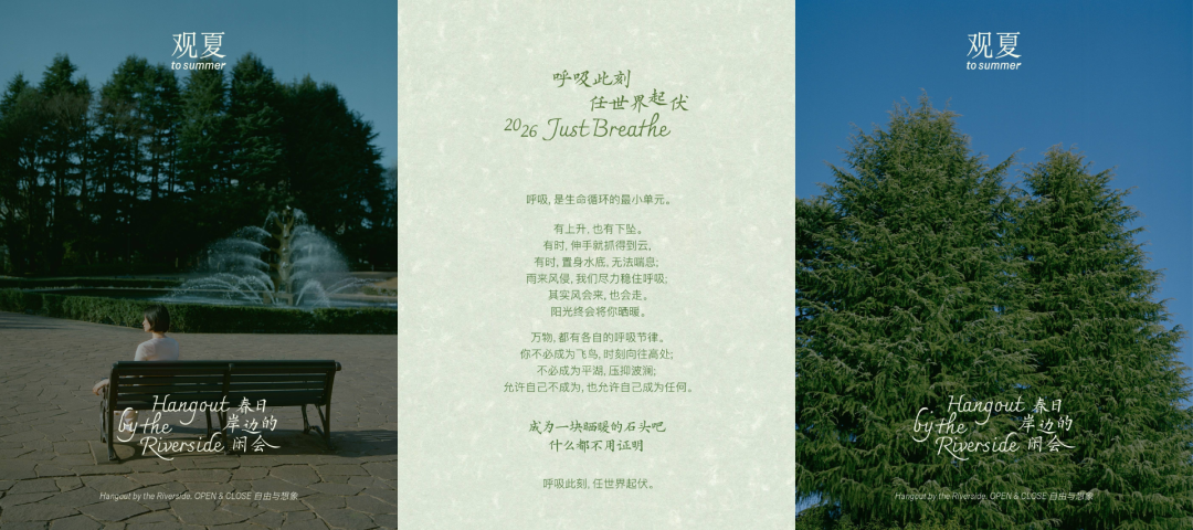 在熟悉的城市街角里,伴随着女作家们的诗句,重新感知春天轻盈自得的气息。观夏还同步推出「Open & Close 自由与想象」限定新香,用香气呼应「呼吸」与生命节律的主题,把内容和产品自然地串在一起。