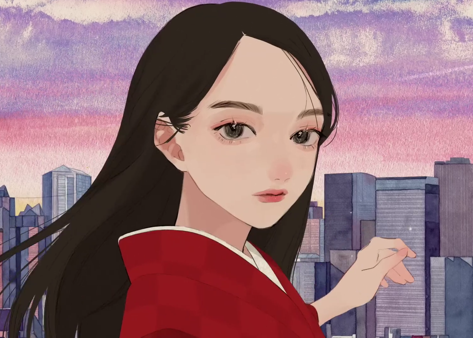 日本洗护品牌いち髪发布和式风情宣传动画《絹髪のちから》,通过真人与插画结合的形式,呈现绢发的美丽韵味。(插画由tamimoon担当)