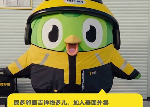 多邻国吉祥物多儿,正式加入美团外卖